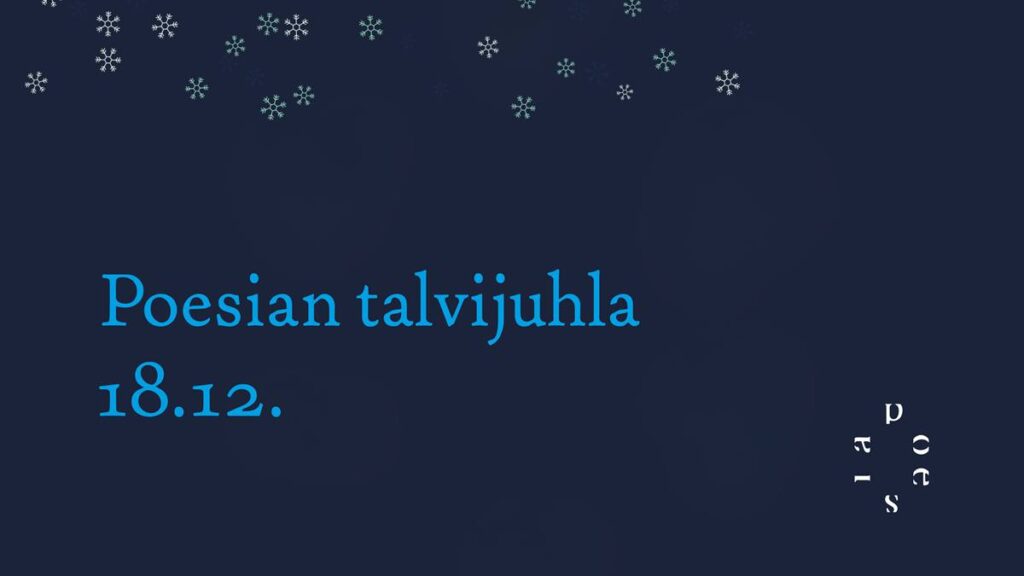 Torstaina 18.12. vietetään Poesian talvijuhlaa Tekstin talon Permantosalissa klo 18.30 alkaen. Ohjelma käynnistyy klo 19.